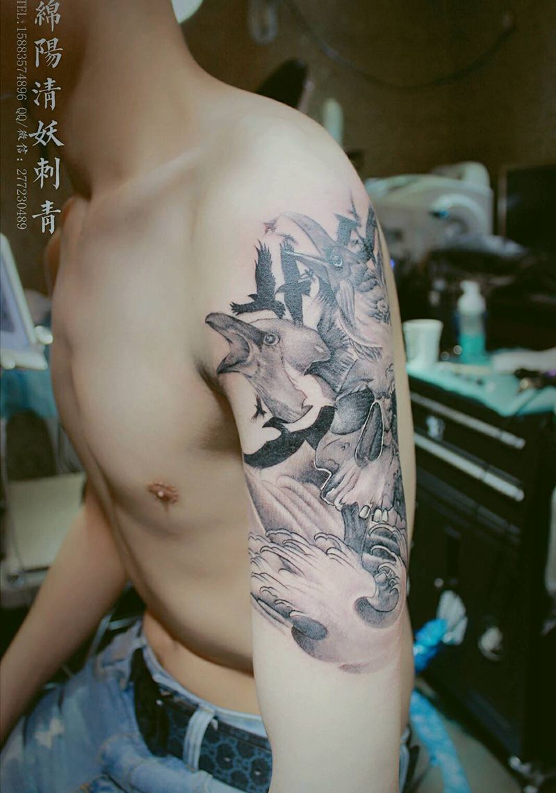 当前位置: 首页 >四川省绵阳市纹身店-绵阳清妖刺青纹身店纹身图案>骷髅乌鸦纹身纹身图片_胸部腰部手部传统肖像动物纹身图案