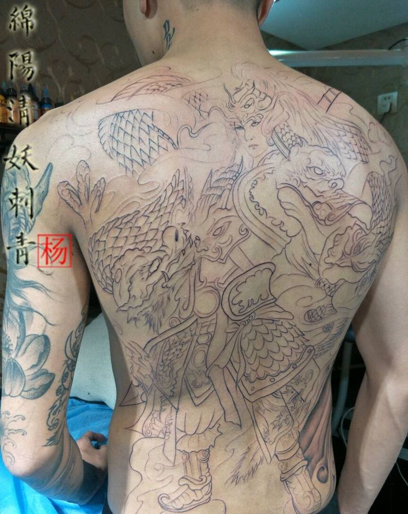 当前位置: 首页 >四川省绵阳市纹身店-绵阳清妖刺青纹身店纹身图案>满背赵子龙纹身勾线下次继续