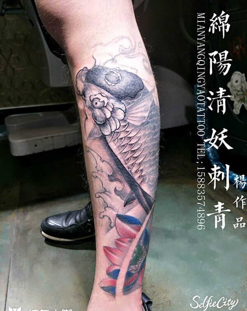 • T网红王老大花腿龙纹身图片_腿部新传统纹身图案