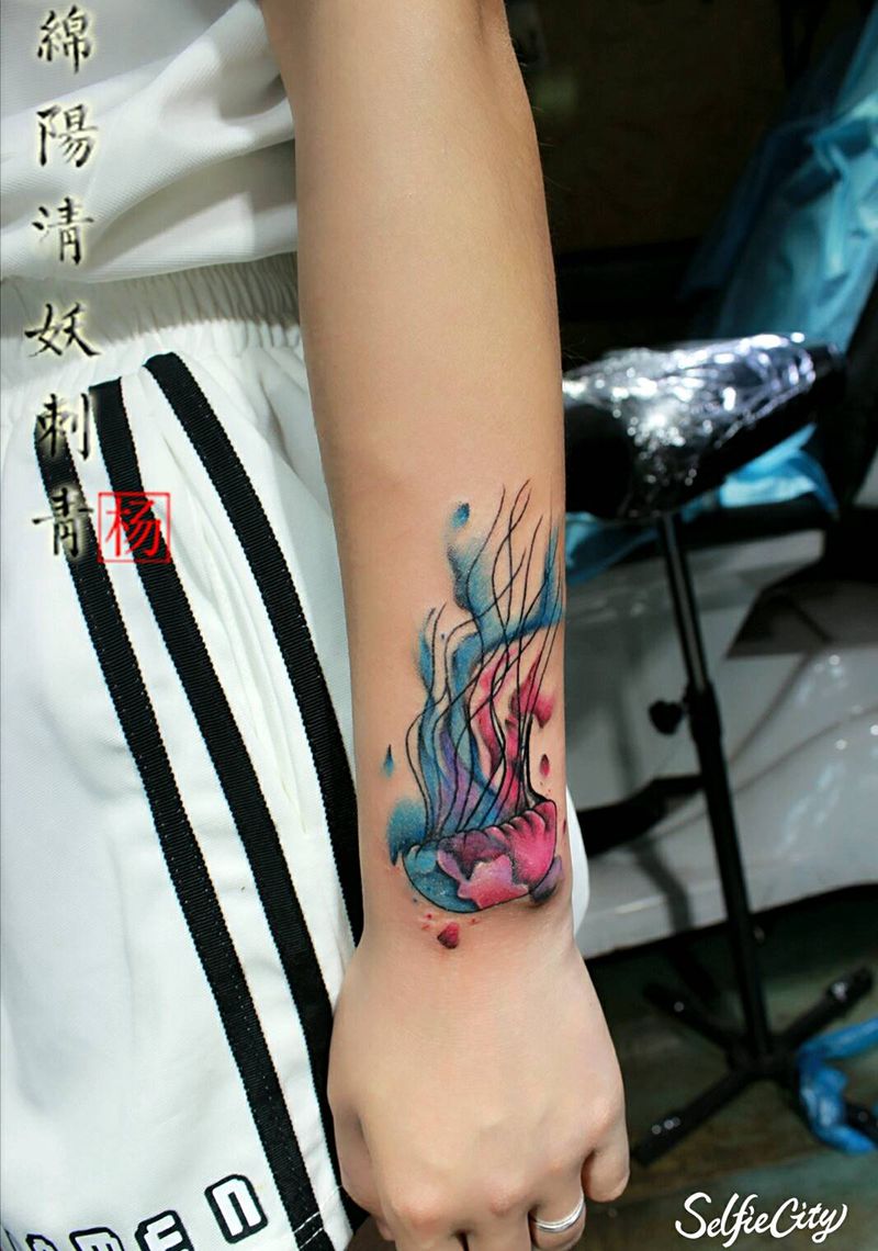 当前位置: 首页 >四川省绵阳市纹身店-绵阳清妖刺青纹身店纹身图案>泼墨风水母纹身遮盖