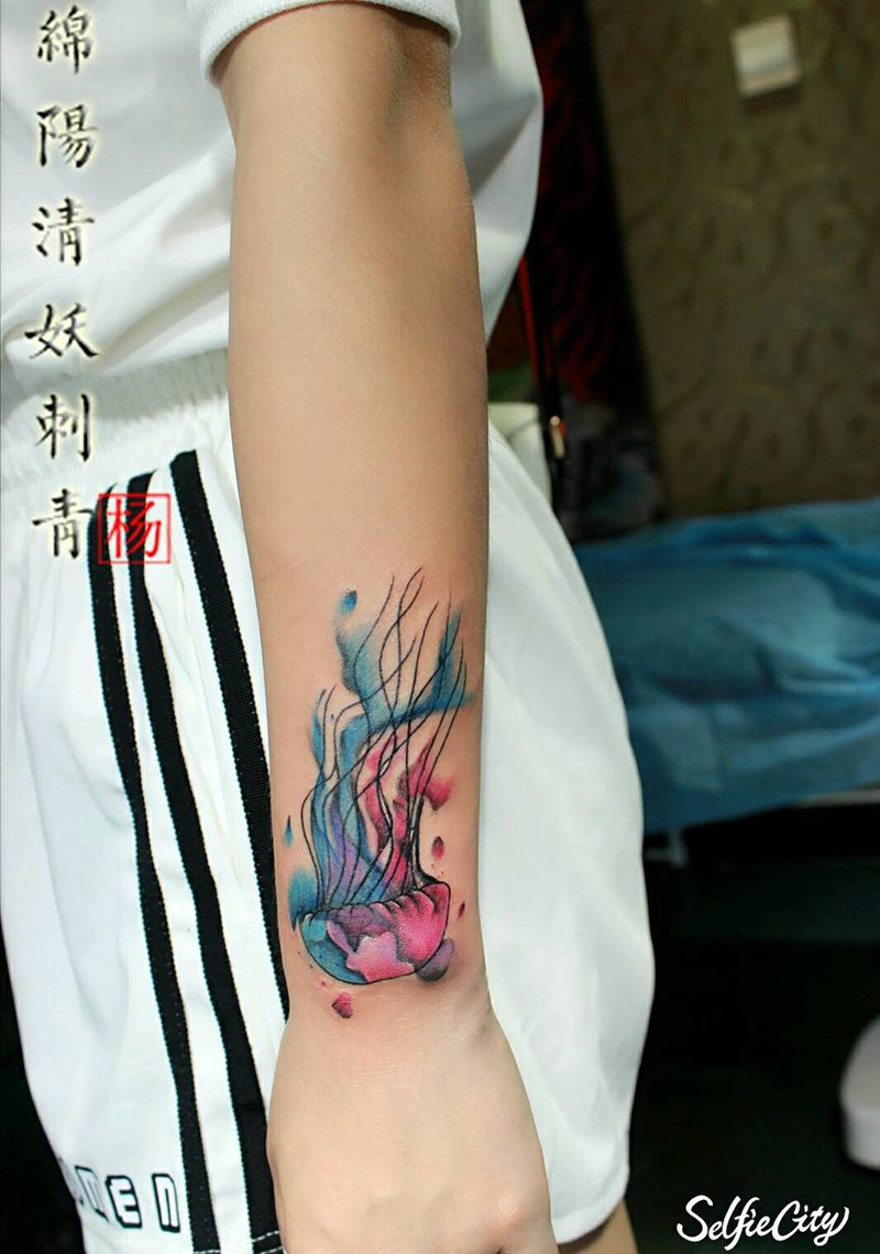 当前位置: 首页 >四川省绵阳市纹身店-绵阳清妖刺青纹身店纹身图案>泼墨风水母纹身遮盖