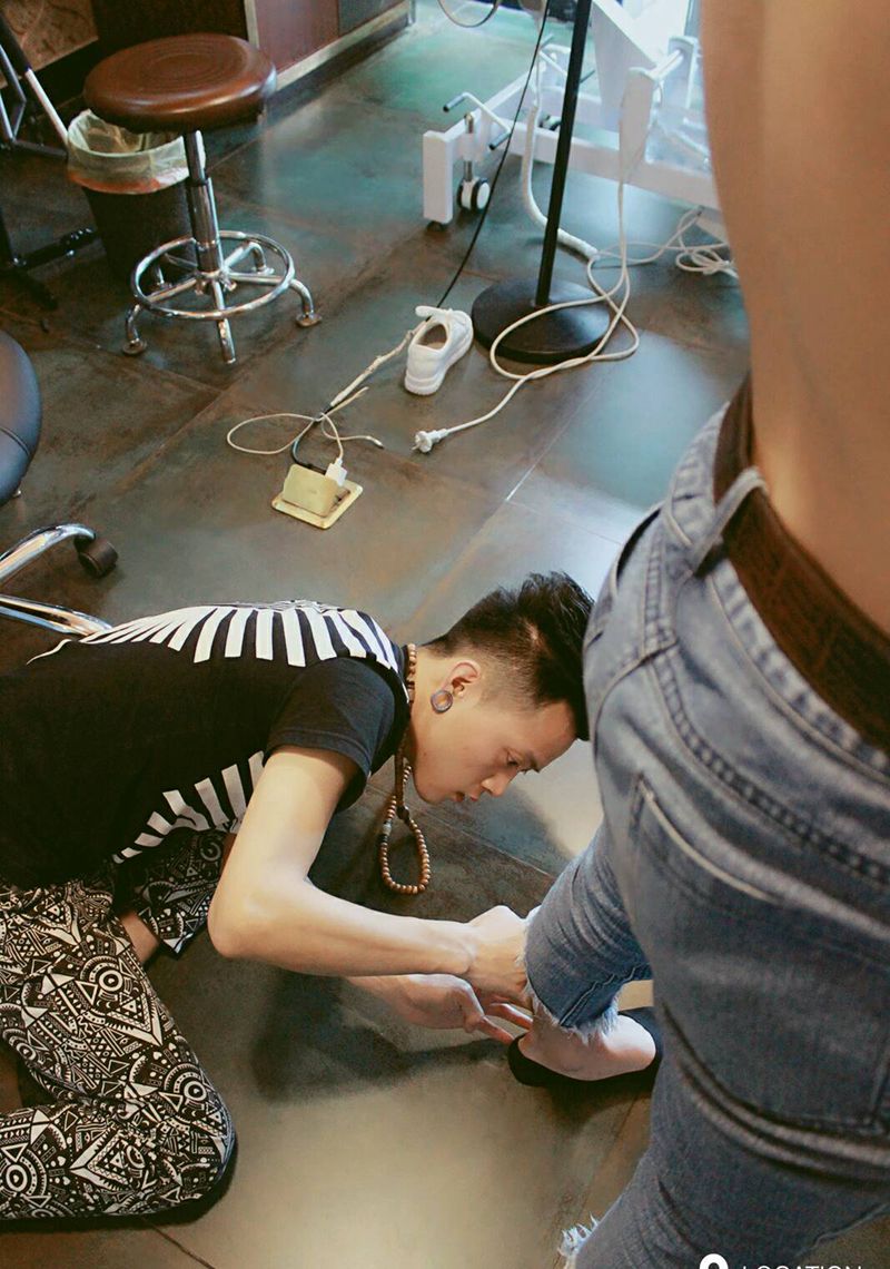 • T包小腿吹火男+阿多福纹身图片_腿部老传统新传统吹火男阿