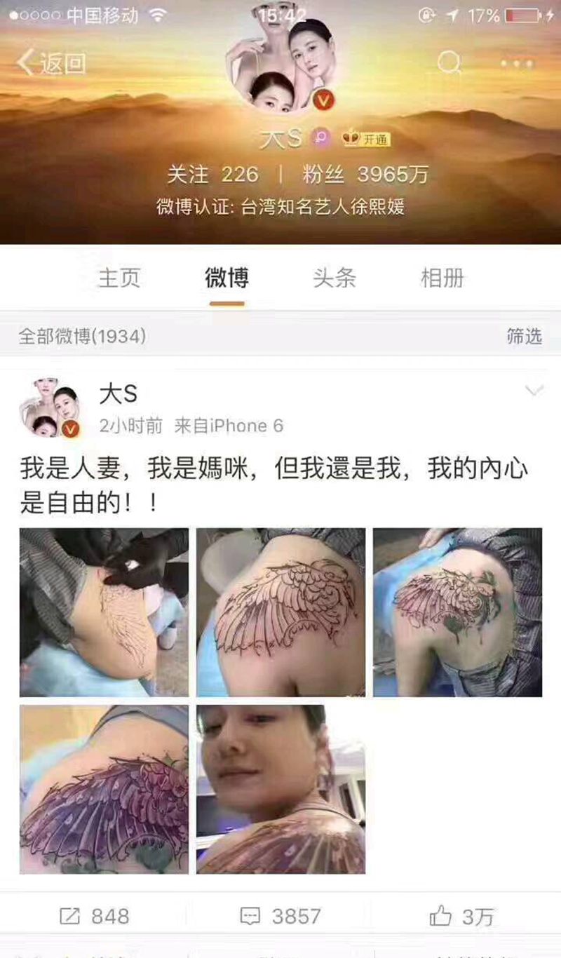 大S,都纹身了你还在等什么,向纹身图片_背部手部肖像写实国画动物宗教纹身图案