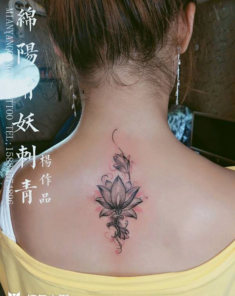梵花后背纹身,寓意着清新脱俗的纹身图片_腹部手部脚部欧美肖像清新国画几何动物人物纹身图案