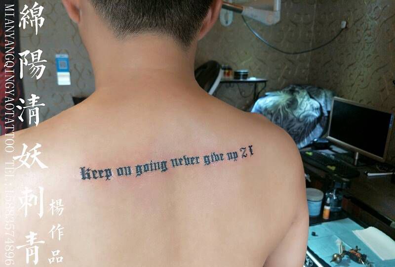 当前位置: 首页 >四川省绵阳市纹身店-绵阳清妖刺青纹身店纹身图案>后背字母纹身纹身图片_胸部腰部臀部腿部肖像贴纸字符静物纹身图案