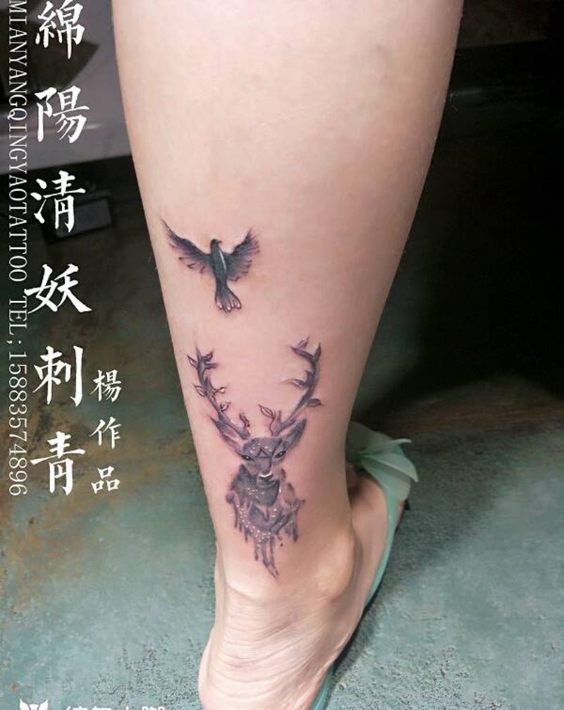 当前位置: 首页 >四川省绵阳市纹身店-绵阳清妖刺青纹身店纹身图案>小腿麋鹿鸽子纹身,今天就这样结纹身图片_胸部腹部手臂手部传统人物植物情侣纹身图案