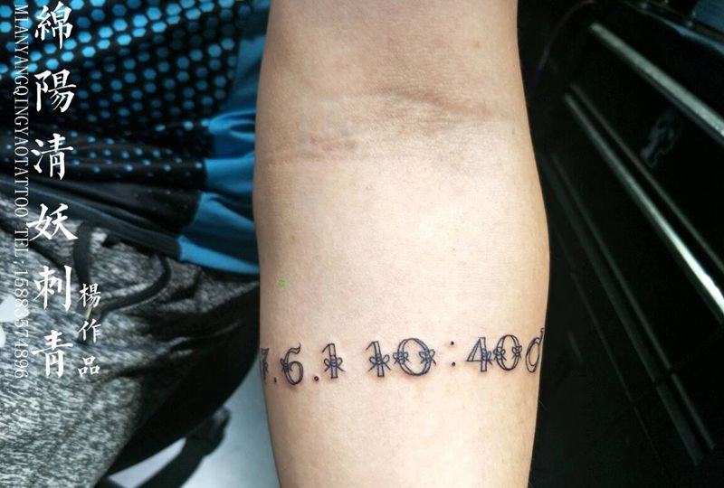 当前位置: 首页 >四川省绵阳市纹身店-绵阳清妖刺青纹身店纹身图案>手臂数字手环纹身,一对可爱的龙纹身图片_手臂腿部欧美传统习俗肖像几何字符动物静物纹身图案