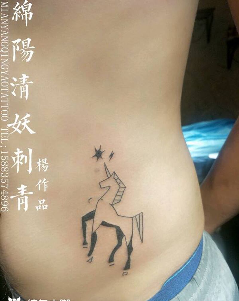 腰部独角马纹身,胸口汉字字母纹纹身图片_腰部手臂脚部欧美传统肖像国画几何动物鬼神纹身图案