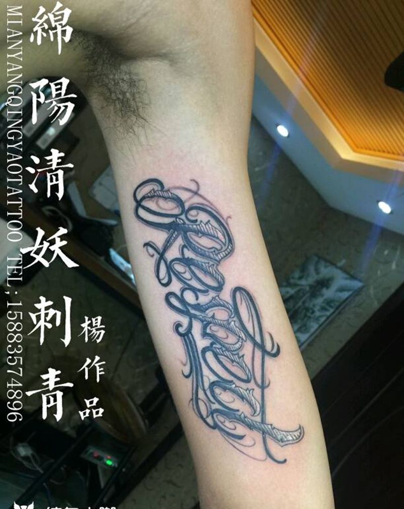 当前位置: 首页 >四川省绵阳市纹身店-绵阳清妖刺青纹身店纹身图案>花体英文纹身纹身图片_手臂腿部手部脚部传统习俗肖像鬼神纹身图案
