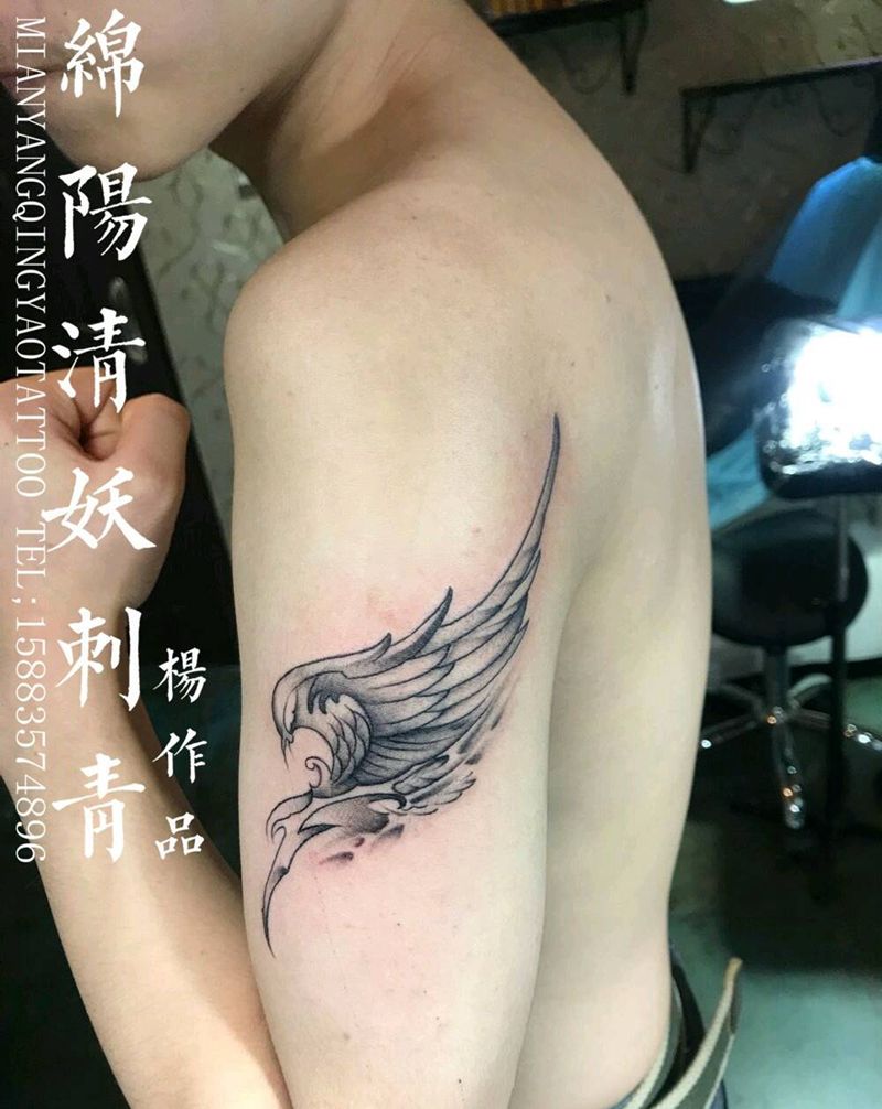 当前位置: 首页 >四川省绵阳市纹身店-绵阳清妖刺青纹身店纹身图案>大臂翅膀纹身纹身图片_背部脚部欧美肖像清新动物插画纹身图案
