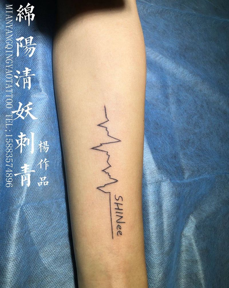 当前位置: 首页 >四川省绵阳市纹身店-绵阳清妖刺青纹身店纹身图案>心电图字母纹身纹身图片_成品手臂清新几何字符纹身图案