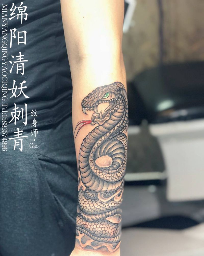 小臂蛇纹身 属牛很搭 纹身师 gao作品纹身图片
