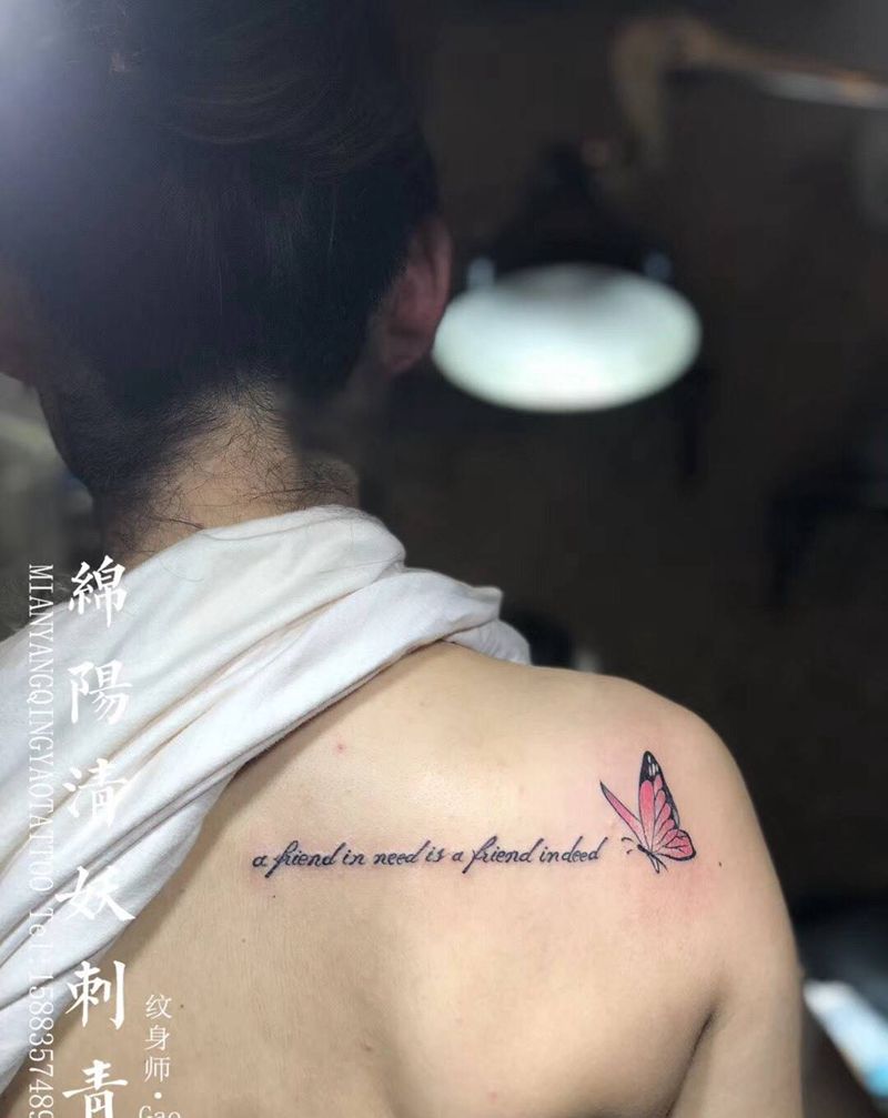当前位置: 首页 >四川省绵阳市纹身店-绵阳清妖刺青纹身店纹身图案>后肩字母蝴蝶纹身纹身图片