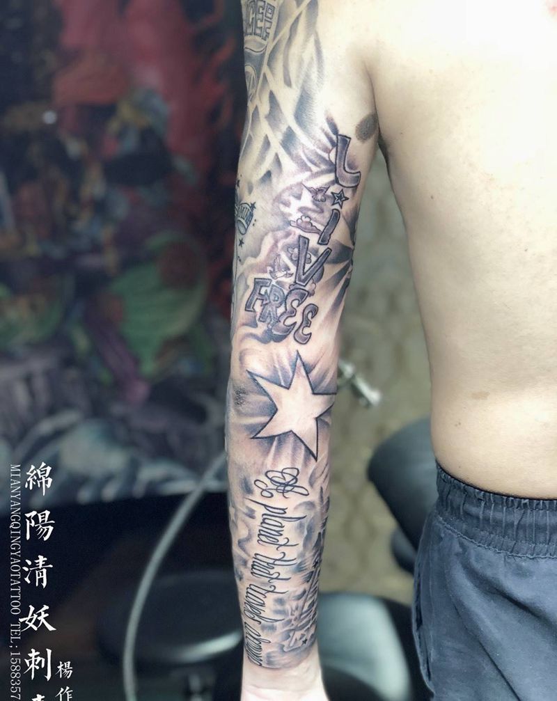 当前位置: 首页 >四川省绵阳市纹身店-绵阳清妖刺青纹身店纹身图案>花臂纹身,简阳的帅哥两次完工店长-杨 作品纹身图片