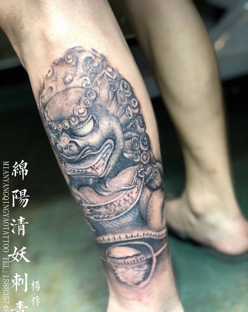 当前位置: 首页 >四川省绵阳市纹身店-绵阳清妖刺青纹身店纹身图案>小腿狮子纹身, 杨作品纹身图片