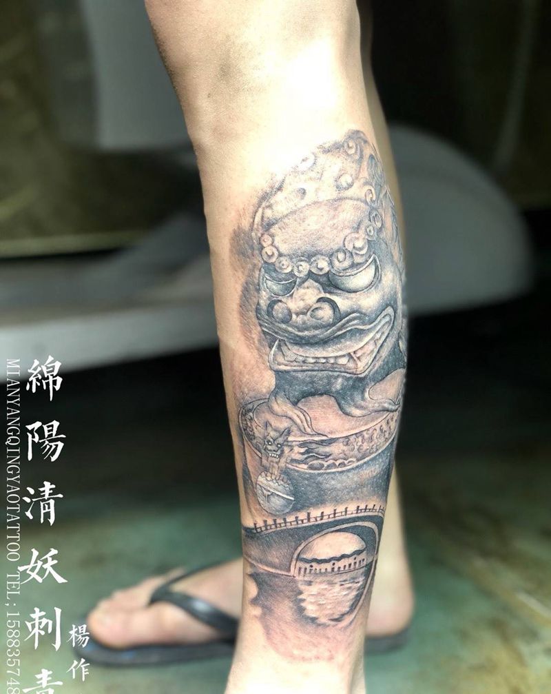 当前位置: 首页 >四川省绵阳市纹身店-绵阳清妖刺青纹身店纹身图案>小腿狮子纹身, 杨作品纹身图片