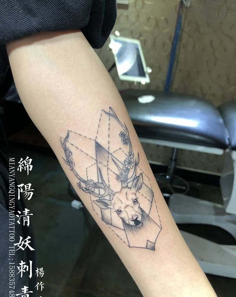 当前位置: 首页 >四川省绵阳市纹身店-绵阳清妖刺青纹身店纹身图案>麋鹿纹身图片