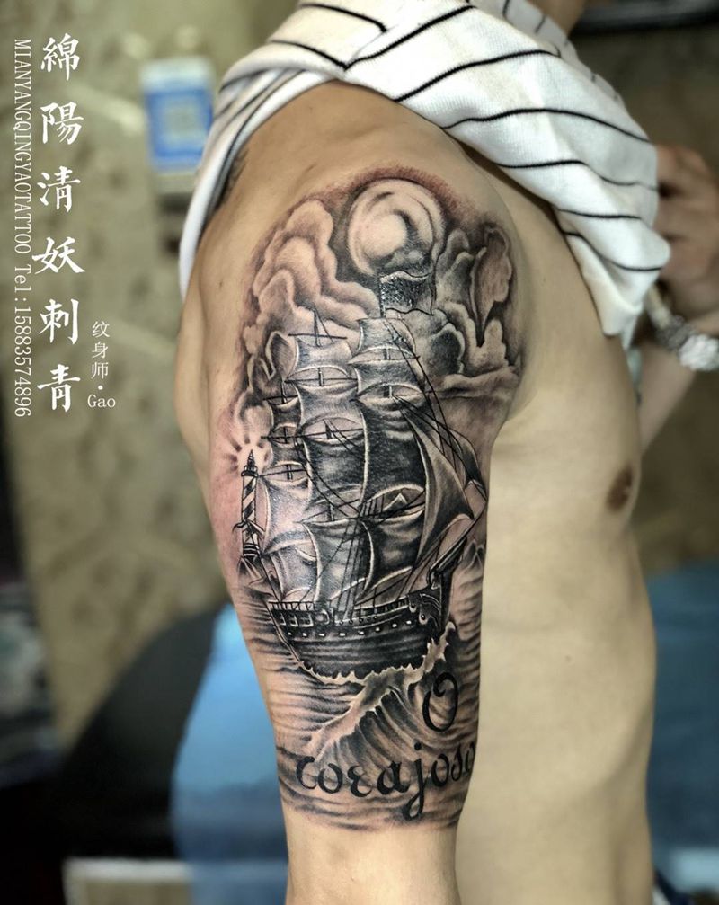 当前位置: 首页 >四川省绵阳市纹身店-绵阳清妖刺青纹身店纹身图案>大臂帆船遮盖纹身 高作品纹身图片
