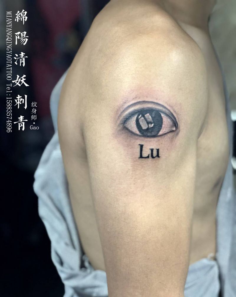 当前位置: 首页 >四川省绵阳市纹身店-绵阳清妖刺青纹身店纹身图案>大臂眼睛加字母纹身 高作品纹身图片