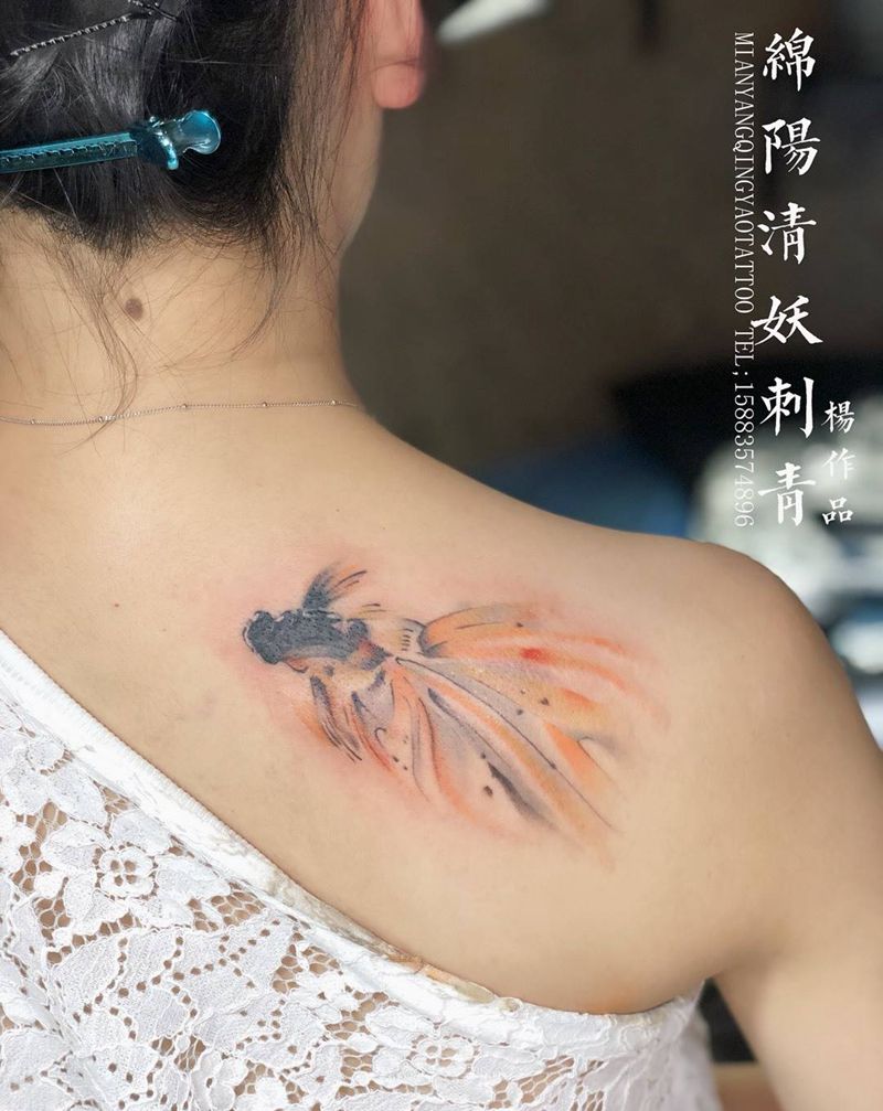 当前位置: 首页 >四川省绵阳市纹身店-绵阳清妖刺青纹身店纹身图案>金鱼遮盖纹身图片