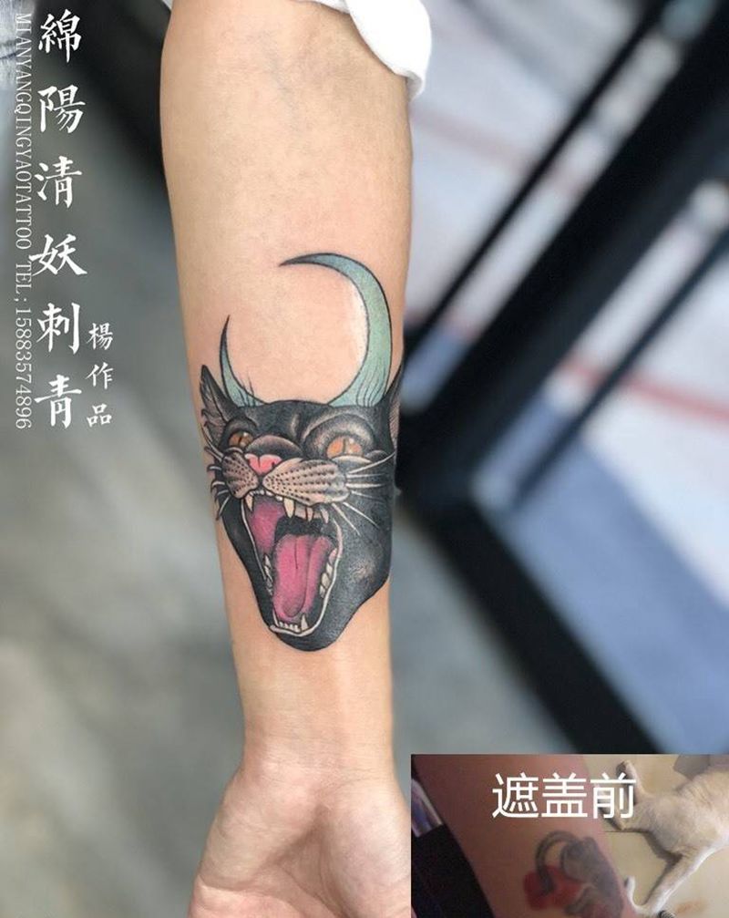 手臂狸猫遮盖纹身 店长-杨作品纹身图片