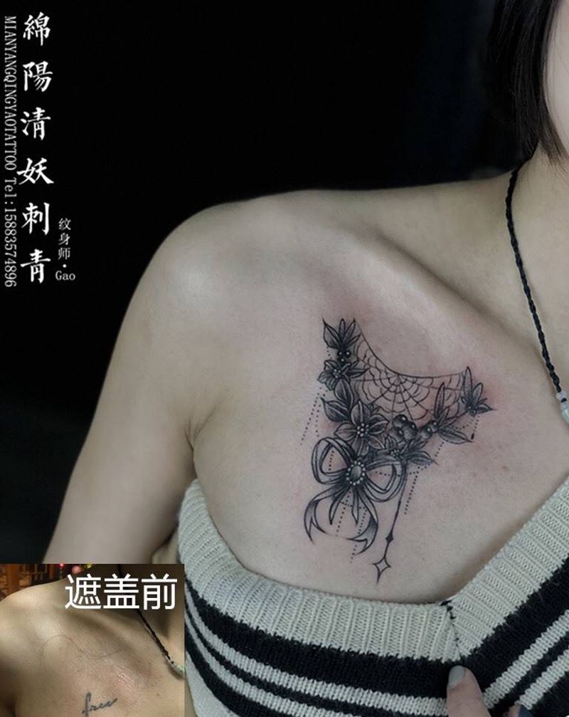 胸口蝴蝶结遮盖纹身纹身图片