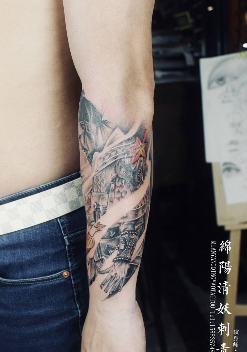 当前位置: 首页 >四川省绵阳市纹身店-绵阳清妖刺青纹身店纹身图案>小臂武士纹身 高作品纹身图片_手臂臀部新传统老传统纹身图案