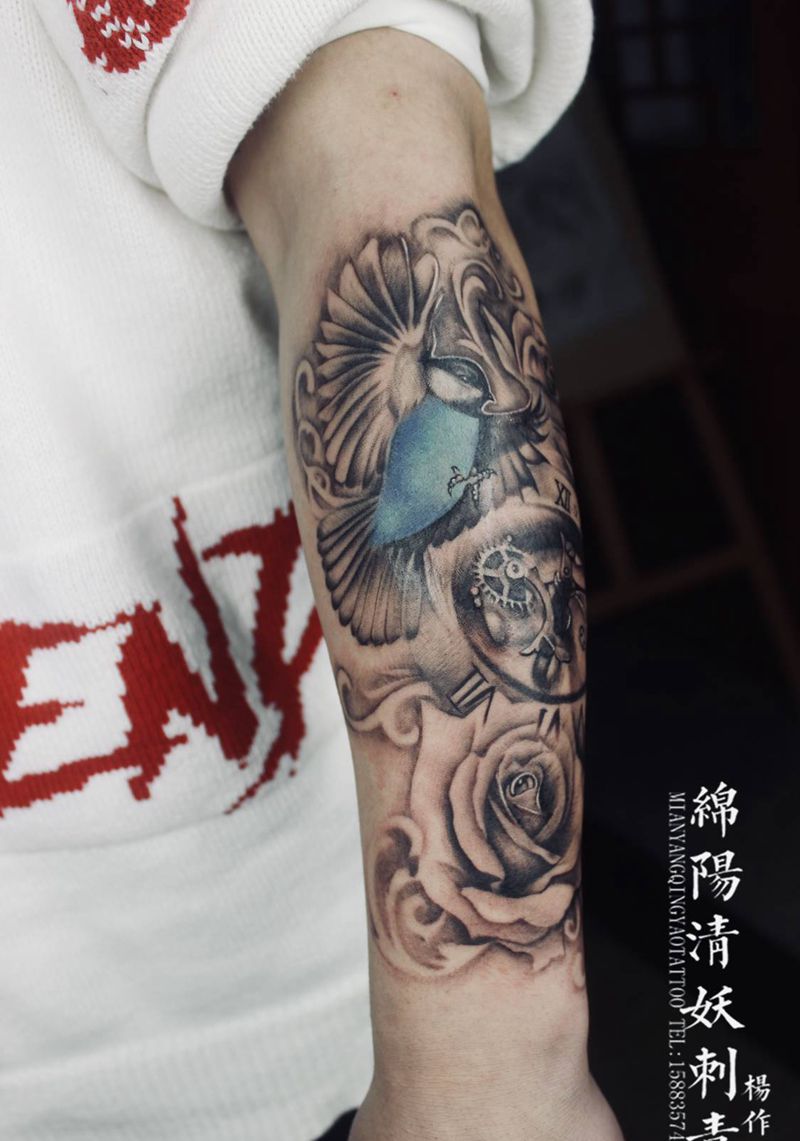 当前位置: 首页 >四川省绵阳市纹身店-绵阳清妖刺青纹身店纹身图案>小臂时钟花纹身图片_手臂纹身图案