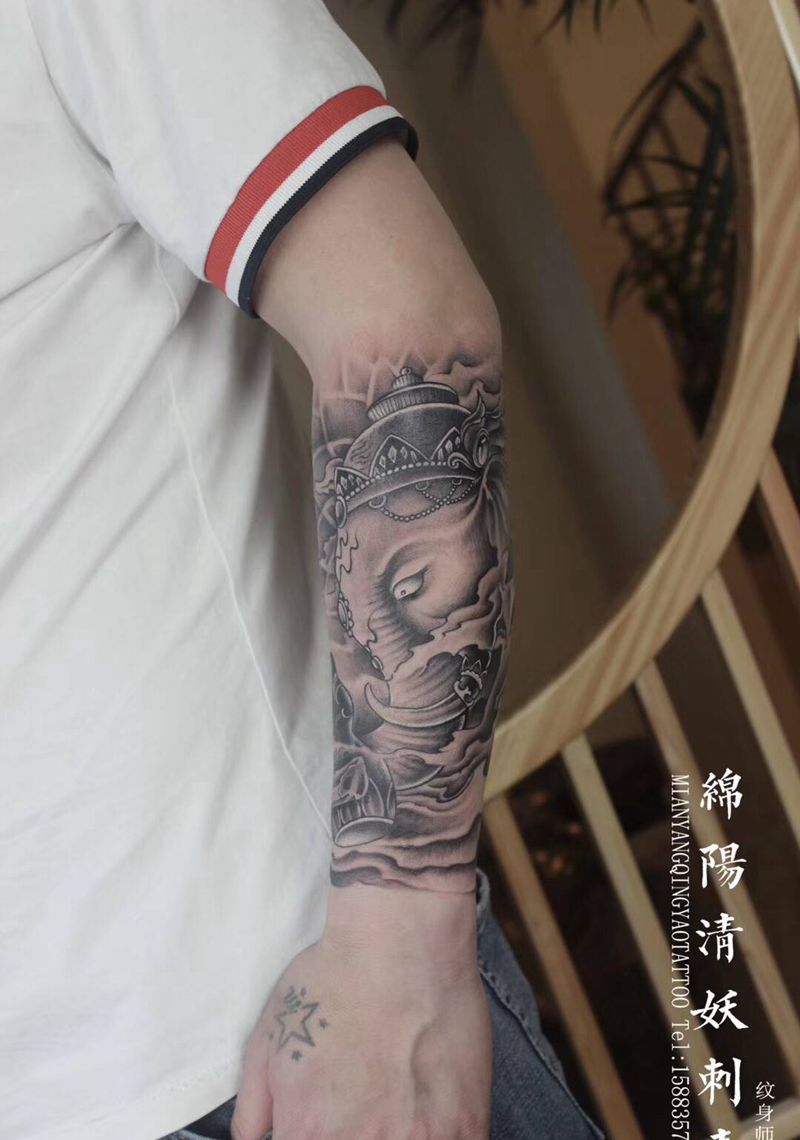 当前位置: 首页 >四川省绵阳市纹身店-绵阳清妖刺青纹身店纹身图案>小臂象神纹身 高作品纹身图片_手臂臀部老传统纹身图案