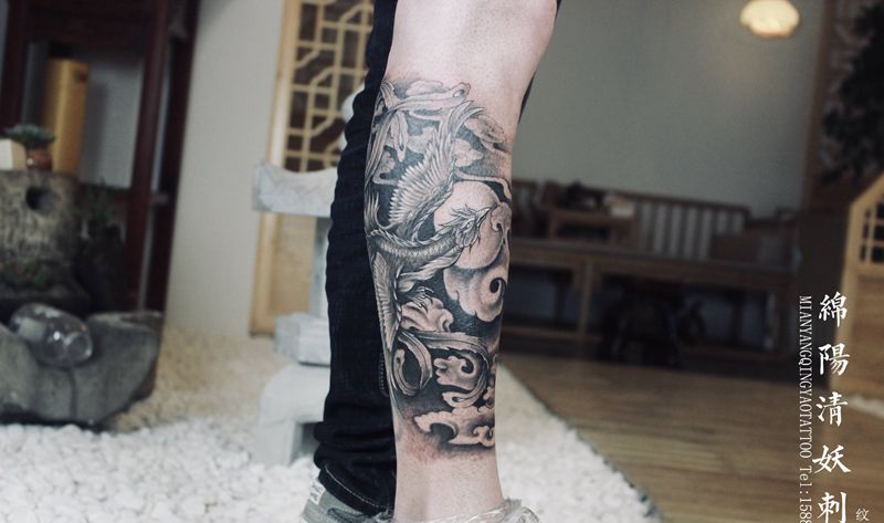 当前位置: 首页 >四川省绵阳市纹身店-绵阳清妖刺青纹身店纹身图案>小腿朱雀纹身 高作品纹身图片_脚部腿部老传统新传统纹身图案