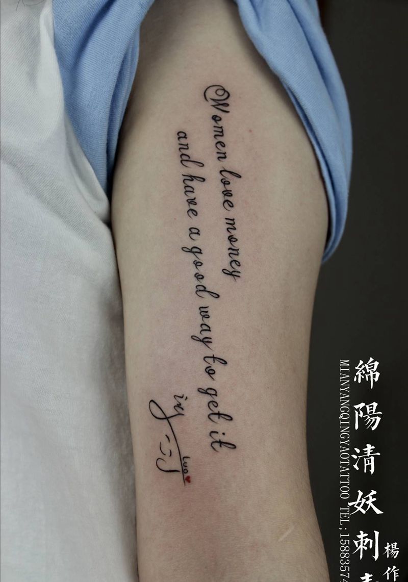 当前位置: 首页 >四川省绵阳市纹身店-绵阳清妖刺青纹身店纹身图案>字母纹身图片_手臂花体字纹身图案