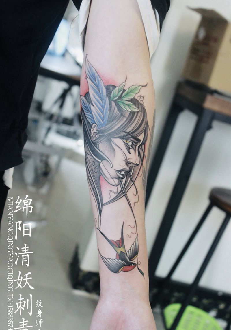 当前位置: 首页 >四川省绵阳市纹身店-绵阳清妖刺青纹身店纹身图案>燕子,女头像纹身图片_手臂Old School纹身图案