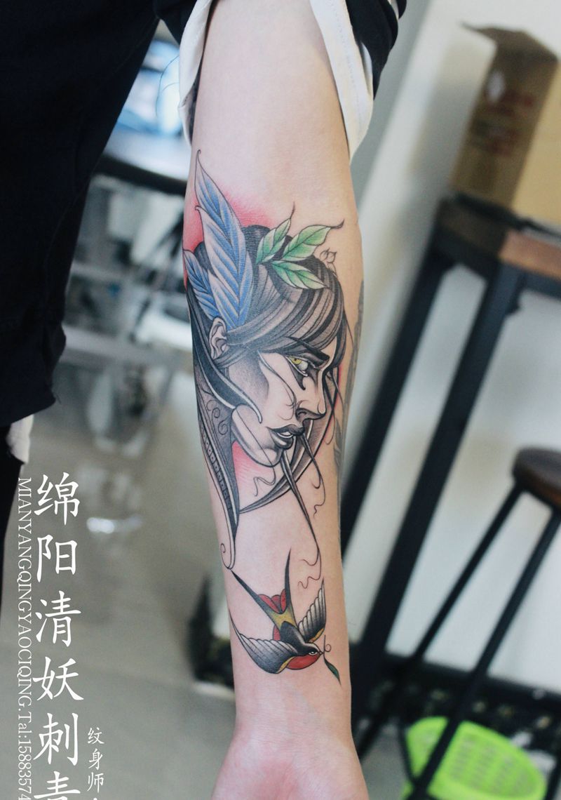 当前位置: 首页 >四川省绵阳市纹身店-绵阳清妖刺青纹身店纹身图案>燕子,女头像纹身图片_手臂Old School纹身图案
