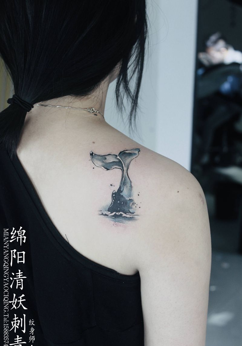 当前位置: 首页 >四川省绵阳市纹身店-绵阳清妖刺青纹身店纹身图案>鲸鱼尾纹身图片_肩部水墨纹身图案