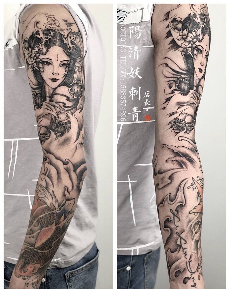 当前位置: 首页 >四川省绵阳市纹身店-绵阳清妖刺青纹身店纹身图案>花臂艺伎纹身图片_胸部肩部纹身图案