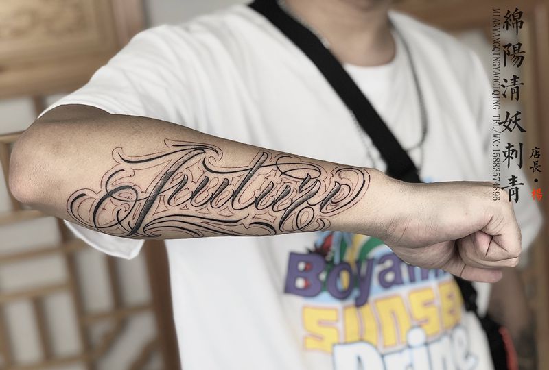 当前位置: 首页 >四川省绵阳市纹身店-绵阳清妖刺青纹身店纹身图案>花体字纹身图片_颈部肩部纹身图案