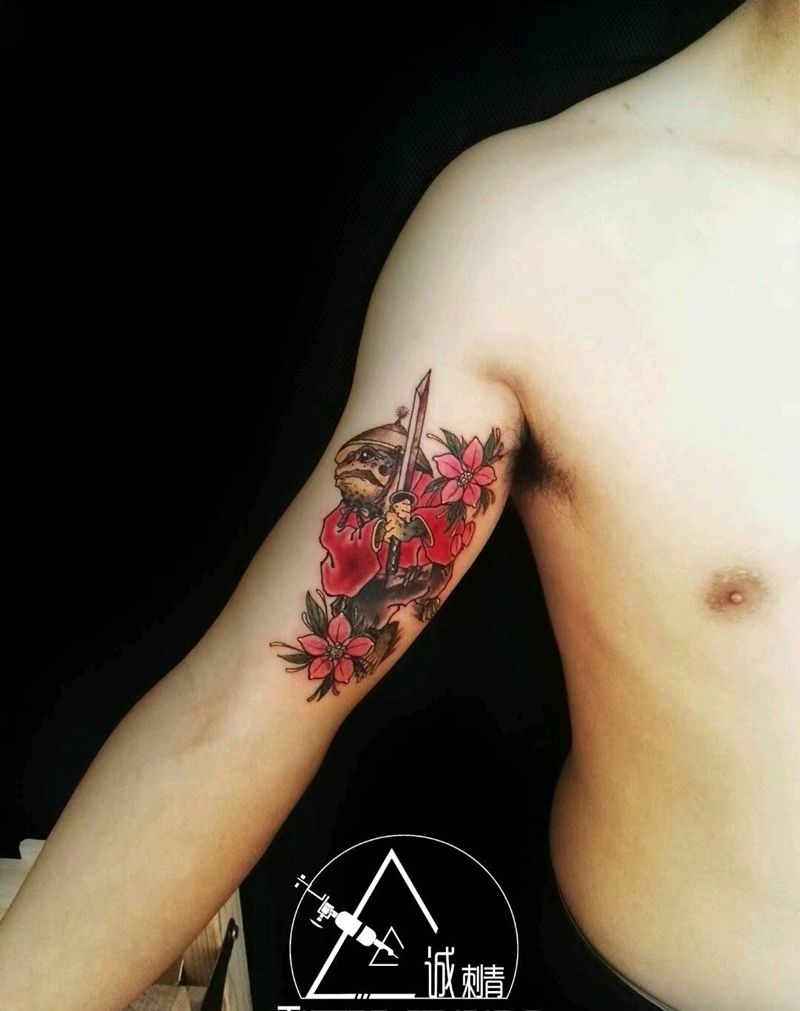 当前位置: 首页 >四川省遂宁市纹身店-诚刺青纹身图案>青蛙武士纹身图片_手臂传统动物原创成品纹身图案