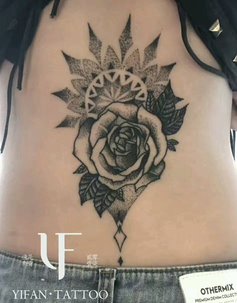 玫瑰加曼陀罗花纹身图片