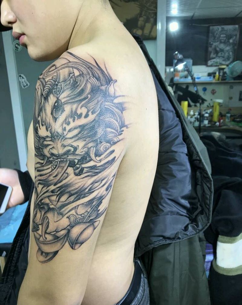• 纹身吧推荐的披肩图腾半胛纹身图案作品展示