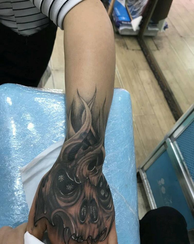 当前位置: 首页 >四川省乐山市纹身店-龍印刺青纹身图案>前些日子做的手背骷髅纹身图片