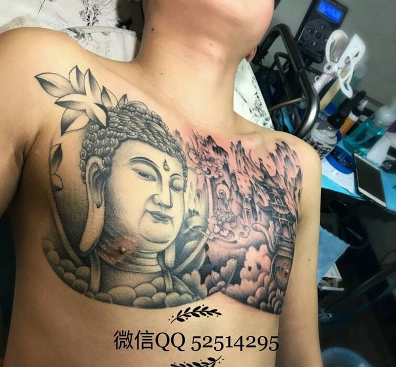 当前位置: 首页 >四川省乐山市纹身店-龍印刺青纹身图案>花胸佛两次完成纹身图片