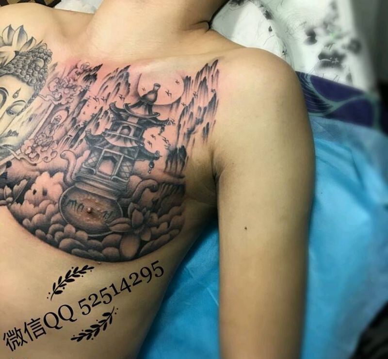 当前位置: 首页 >四川省乐山市纹身店-龍印刺青纹身图案>花胸佛两次完成纹身图片
