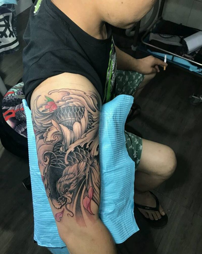 当前位置: 首页 >四川省乐山市纹身店-龍印刺青纹身图案>客人自带鲤鱼完成纹身图片