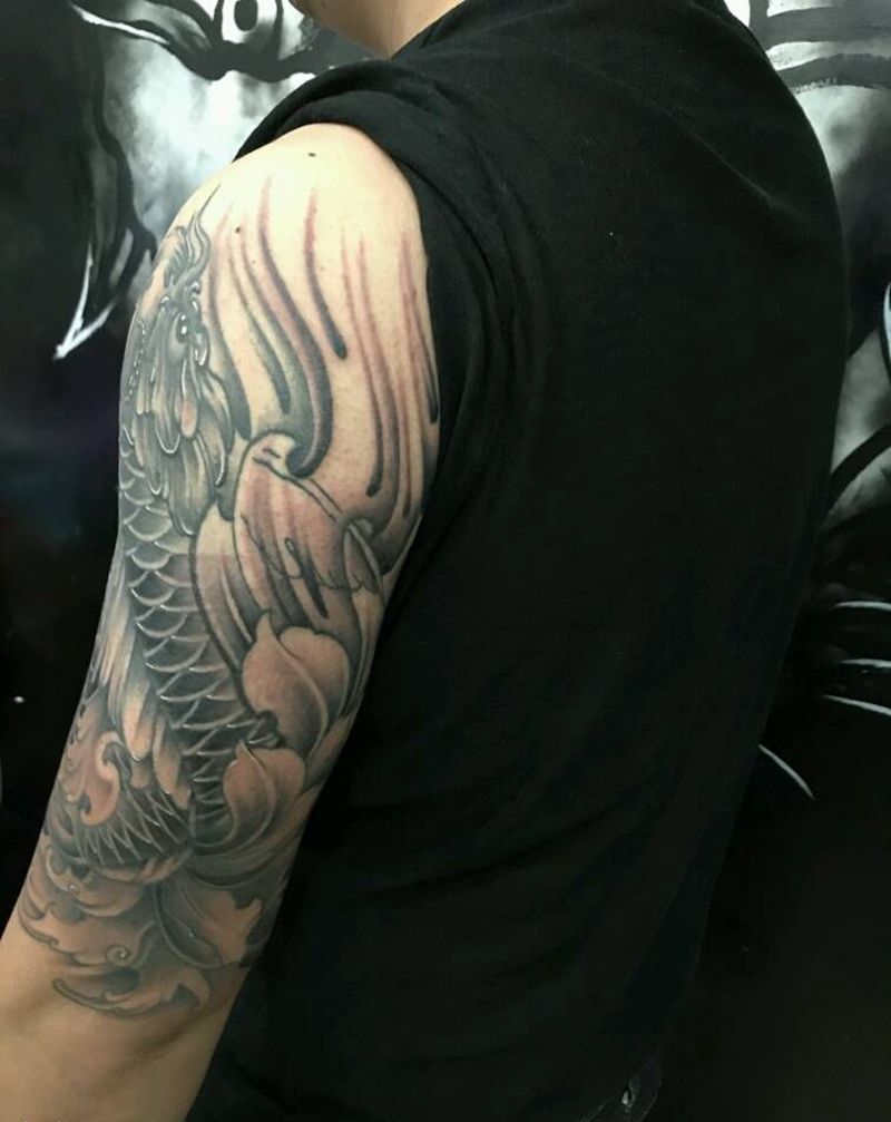 当前位置: 首页 >四川省乐山市纹身店-龍印刺青纹身图案>大臂鲤鱼完成纹身图片