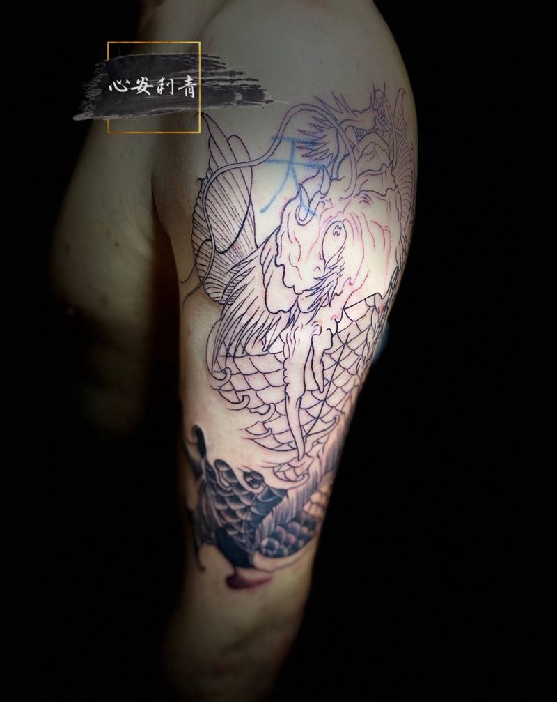 龙鱼纹身图片_手臂新传统纹身图案