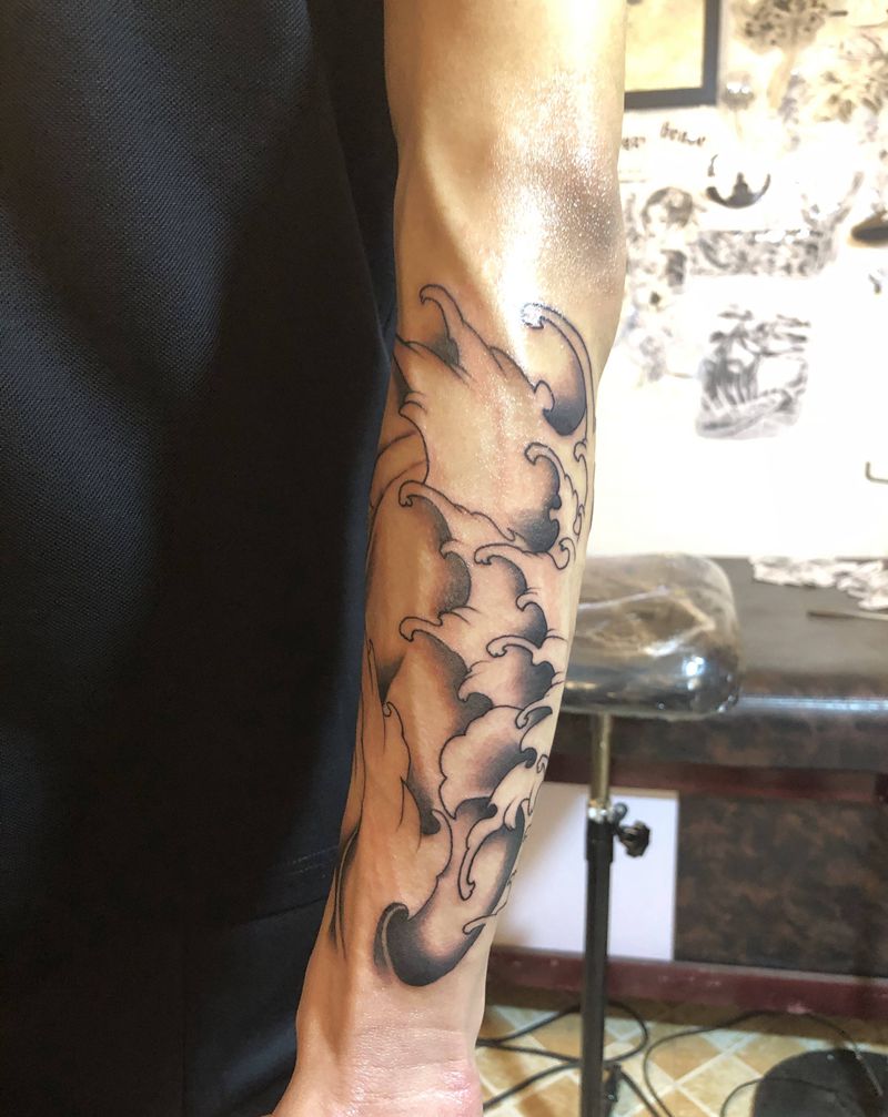 当前位置: 首页 >四川省广元市纹身店-心安刺青纹身图案>广元纹身心安刺青遮盖纹身图片_手臂新传统遮盖纹身图案