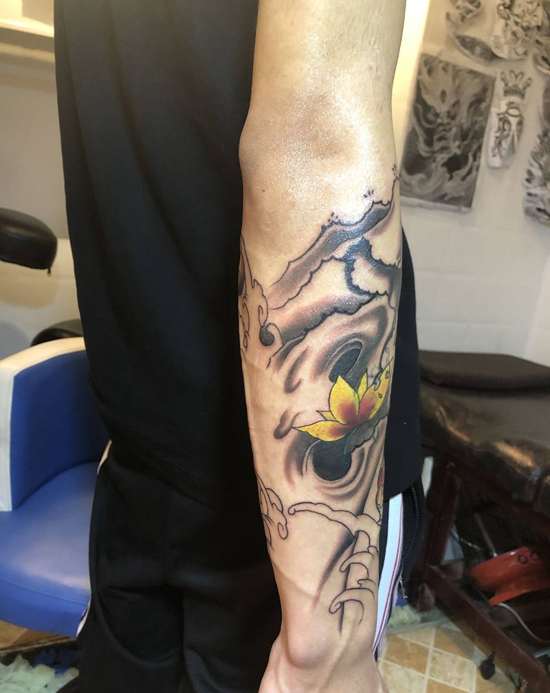 广元纹身心安刺青遮盖纹身图片_手臂新传统遮盖纹身图案