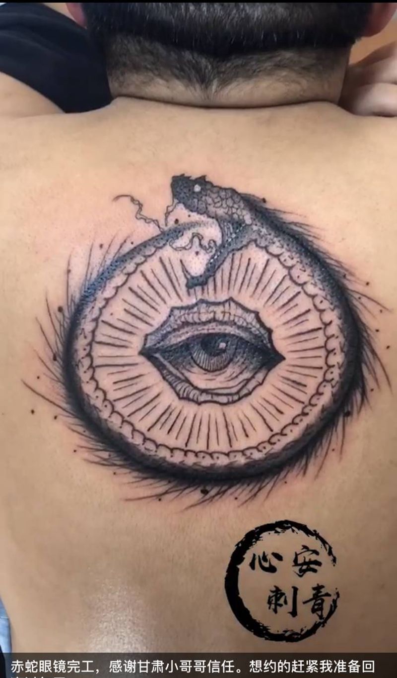广元纹身心安刺青纹身图片_背部几何纹身图案