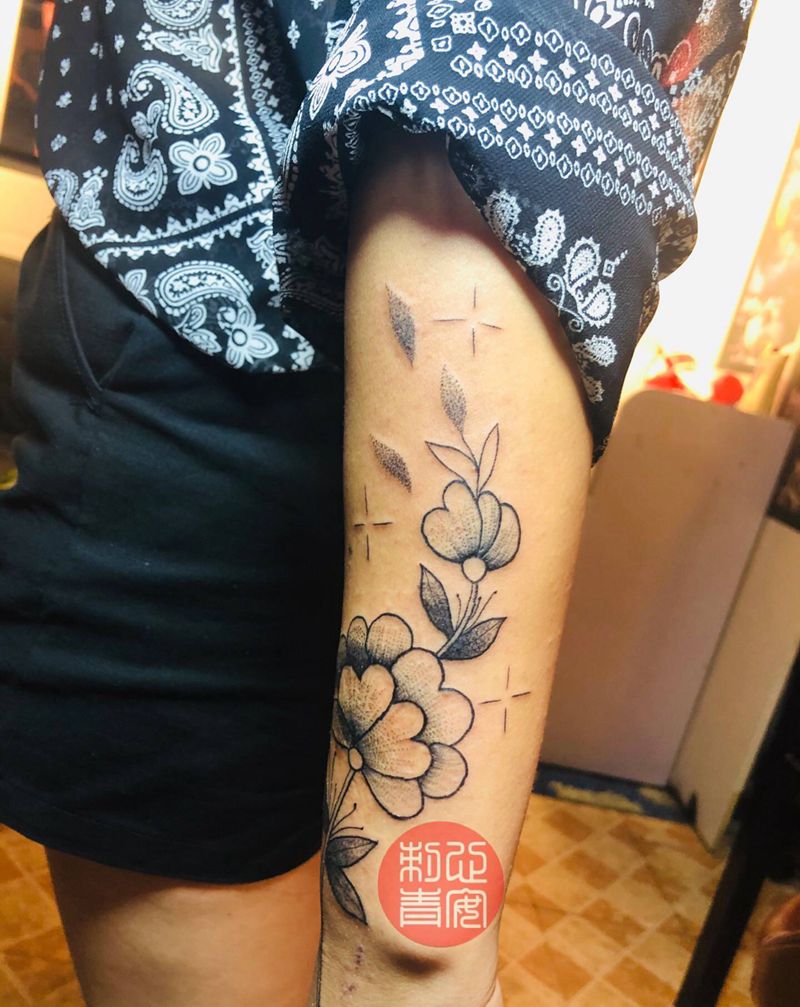 素花纹身图片_手臂点刺纹身图案