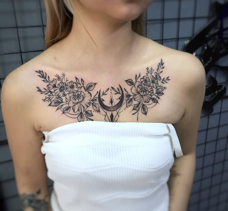 • 女性大花胸纹身_43张霸气漂亮的女性大花胸纹身图案作品